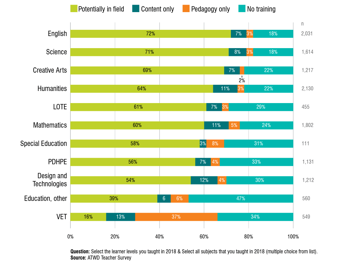 This teacher is not alone. A 2021 report by the Australian Institute for Teaching and School Leadership (AITSL) indicates that around 1 in 5 secondary teachers are teaching out-of-field, that is, teaching a subject for which they have no qualifications. For secondary Mathematics, this is slightly higher at 24% from the most recent teacher workforce data. With the disruptions and staff shortages throughout much of the past 6-12 months, there would likely be even more teachers in this boat.
