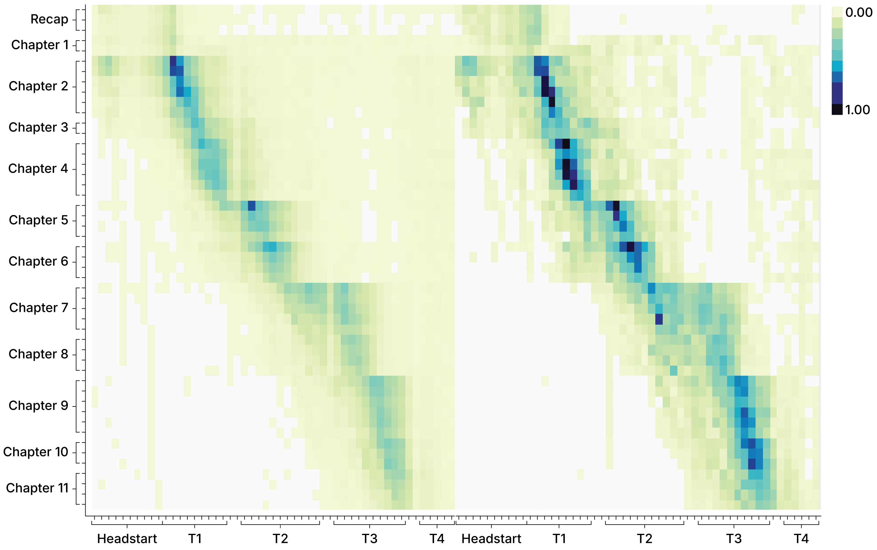 The heat maps above show a clear pattern: top performers follow a structured approach throughout the year. They don't cram before exams - instead, they: